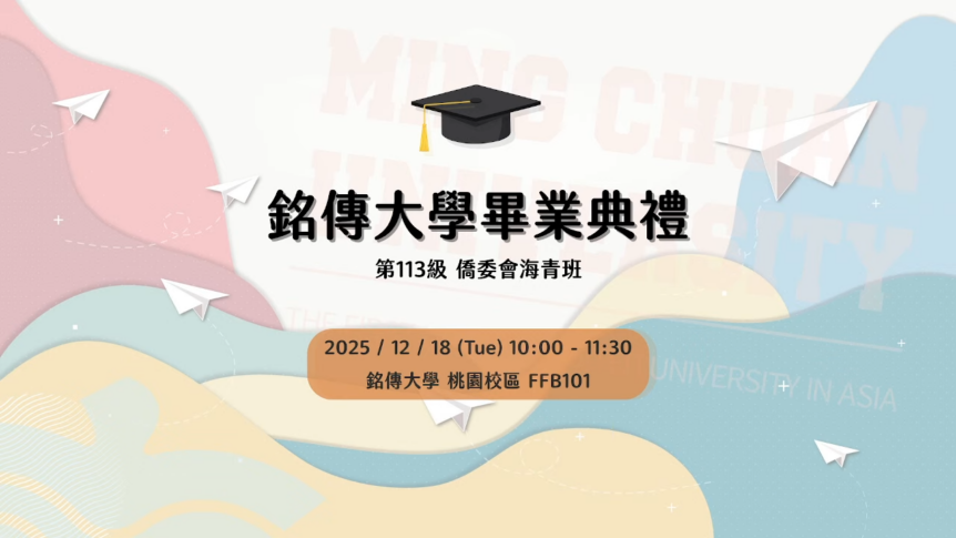 [Online LIVE Broadcast] The 113th Class Graduation Ceremony of the OCAC Overseas Youth Vocational Training Program, Ming Chuan University Date: 12/18, 2025 Time: 10:00-11:30 Location: International Building, Taoyuan Campus (FF) Link: https://www.youtube.com/live/qkx1eLqA4Lo?si=uSo71nRI4Np7Sivf Language: Chinese More High-definition live broadcast on MCU NetTV #Follow our Instagram @MCU_NetTV